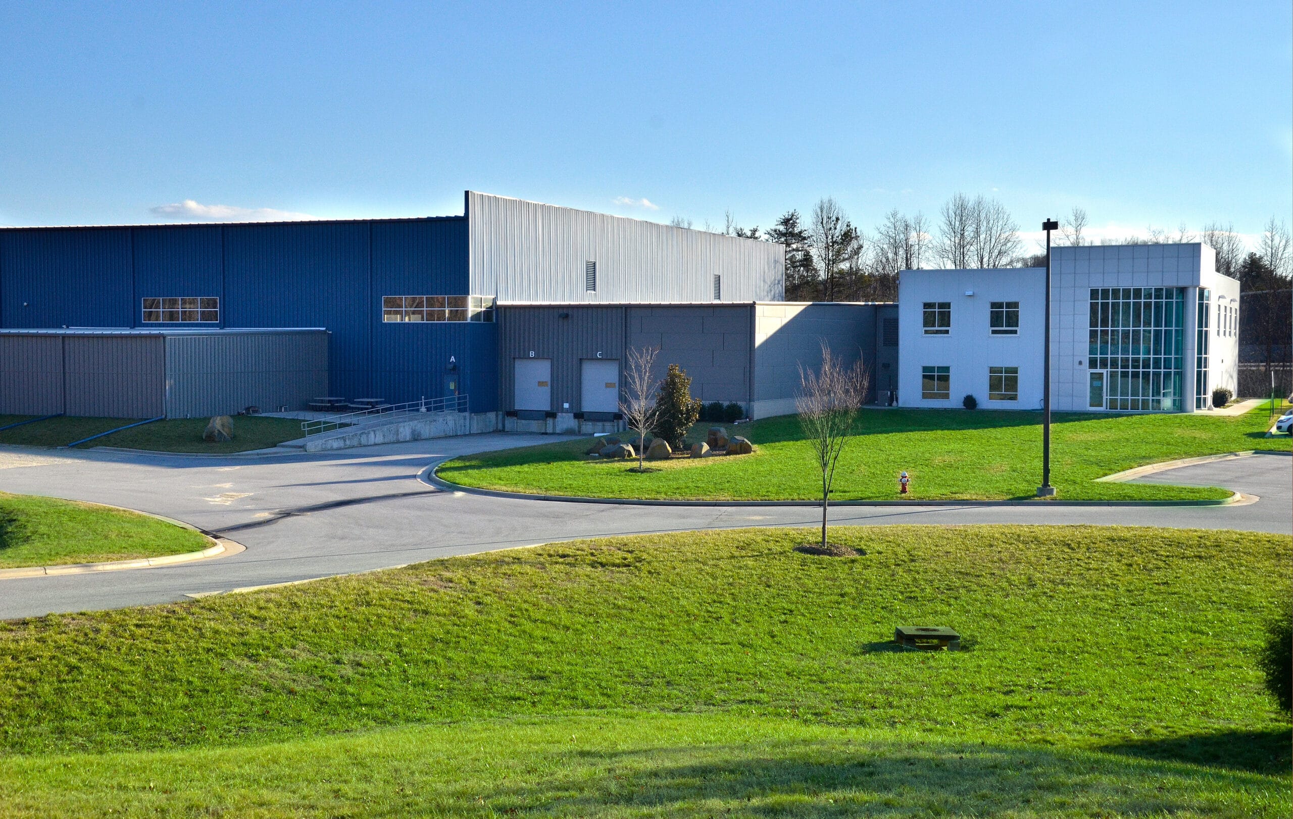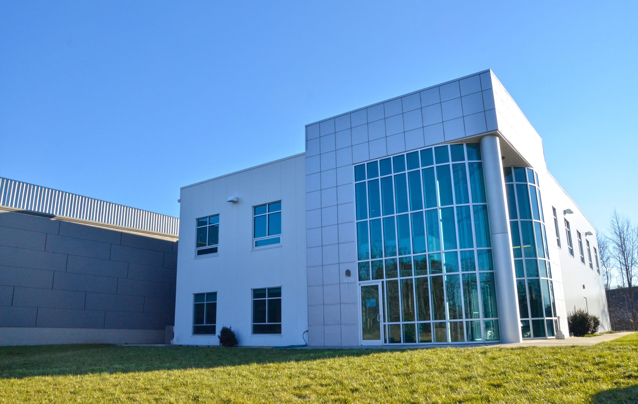 Though the owner wanted to save time and money, he did not want to forfeit a customized look for his new facility. To secure both, a pre-engineered building was combined with customized exterior metal panels providing the design flexibility the owner was seeking. With this, glass wall panels were installed in the manufacturing area and at the main entrance in the form of a two-story, glass curtain wall.