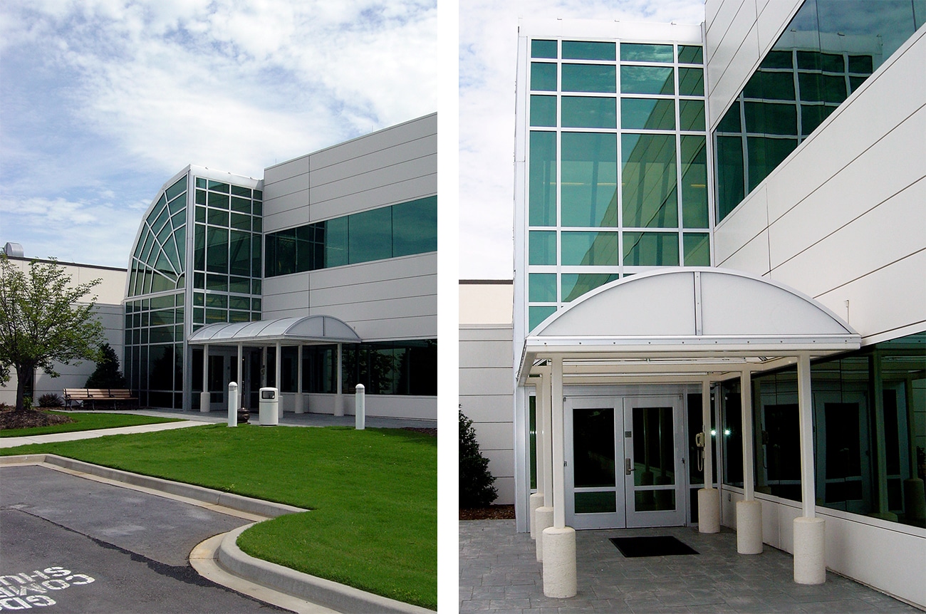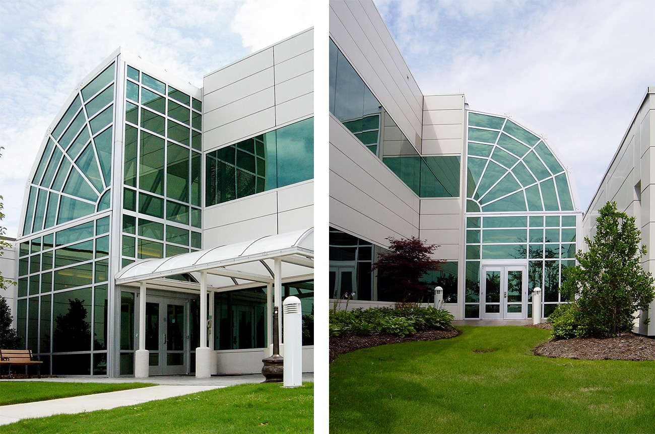 Set on naturally sloping terrain, the building is strategically designed to provide easy access to the main-level public entrance via a glass atrium. Additionally, a lower level parking area and entrance were created to provide a secure and separate entry for employees.